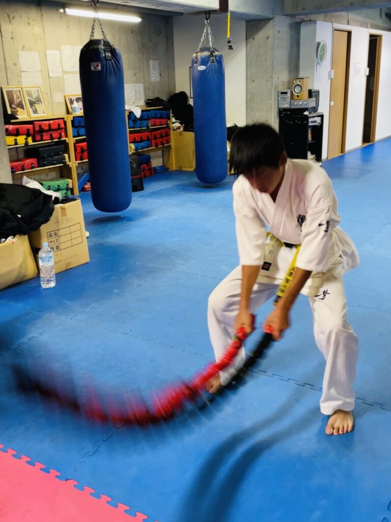 ロープトレーニング、ウォーターバッグ、フィジカルトレーニング、サンドバッグでの追い込み稽古まで。