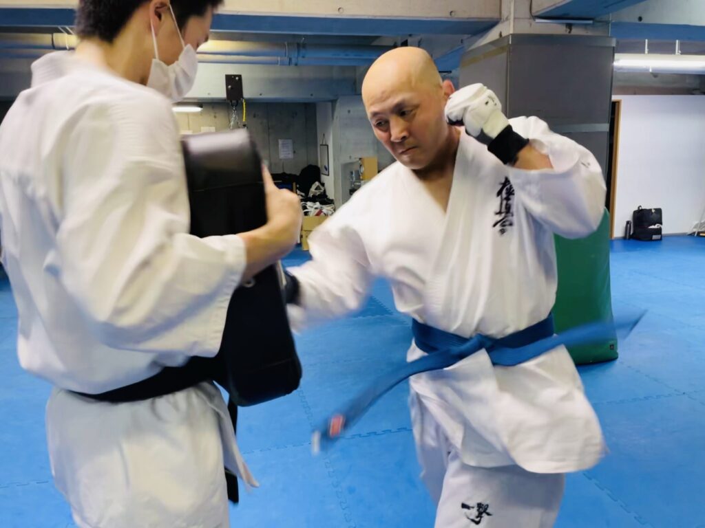 得意の突き技を磨く小俣さん。(9月30日の神奈川県大会に出場予定)