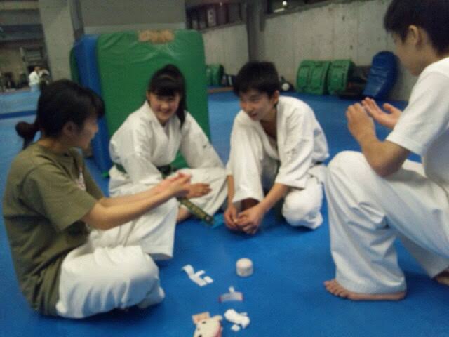 稽古と掃除が終わり、クリスマス会のグッズで仲良く遊ぶ彼らの様子は少年部達と変わらないなと思って観ていました。
