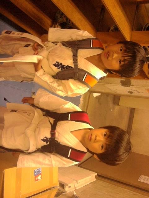 写真は右側の弟のJ君に続き、左側の、お兄ちゃんのN君が、とうとう入会して稽古に来てくれた時の物です。